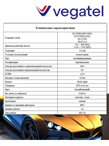 | Модель | антенна автомобильная, антенна 4g, ANT-700/2700-5MO |