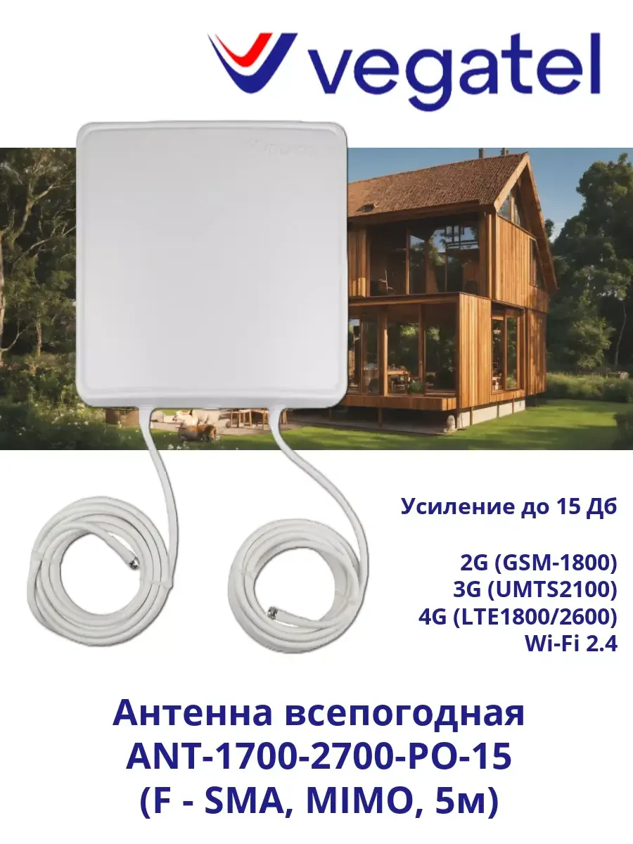 | Модель | Антенна 4G, Антенна Vegatel, VEGATEL ANT-1700-2700-PO-15 (F - SMA, MIMO, 5м) |