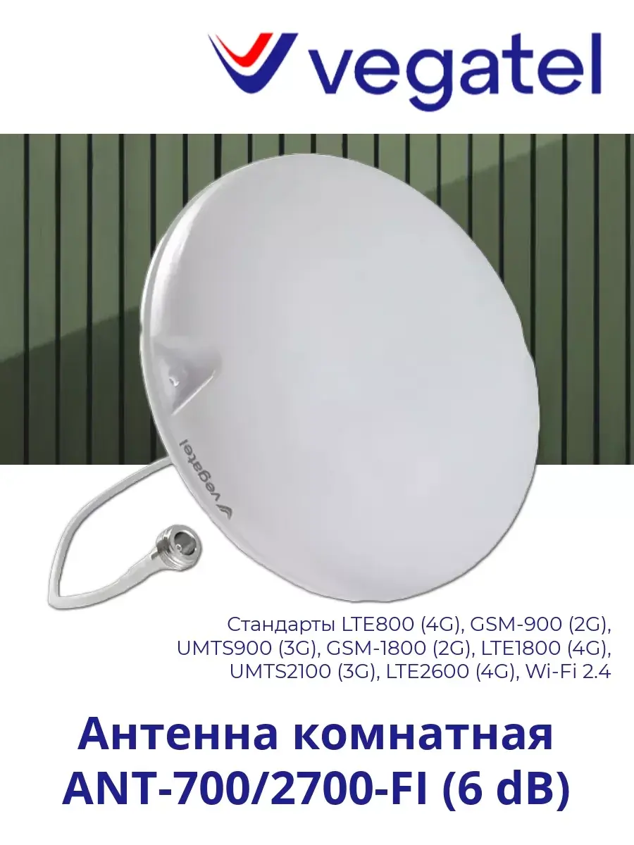 Комнатная антенна VEGATEL ANT-700/2700-FI принимает и передает сотовый сигнал, при этом усиливая его с коэффициентом 6 дБ. VEGATEL ANT-700/2700-FI работает со всеми стандартами связи: 2G, 3G и 4G LTE. Антенну можно использовать также и для передачи Wi-Fi.