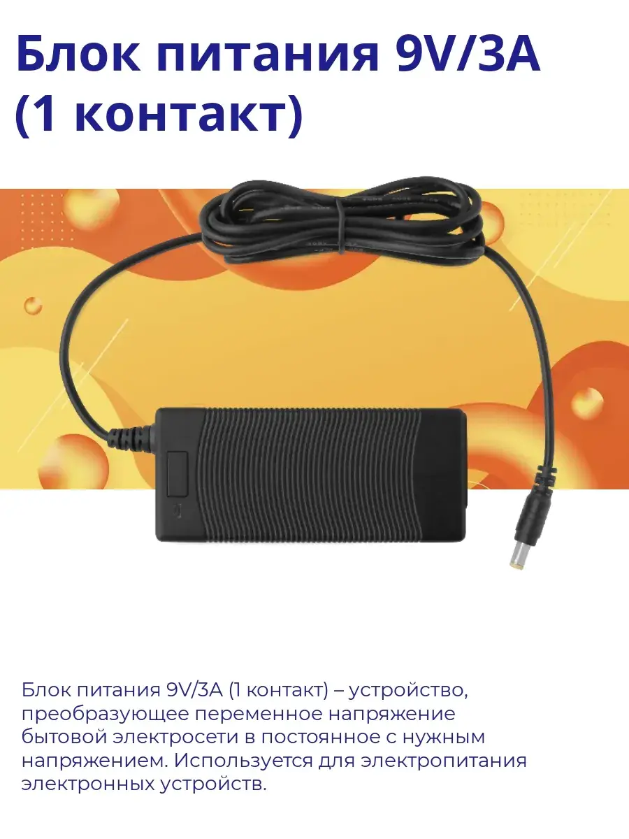 | Артикул | Блок питания 9V/3A (1 контакт)/R00626 |