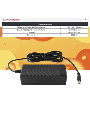 | Модель | Блок питания 9V/3A (1 контакт) |