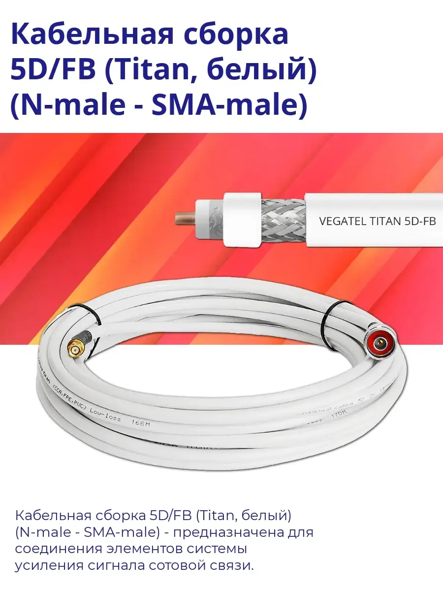 | Модель | Кабельная сборка 5D/FB белый (N-male - SMA-male) 20 м |