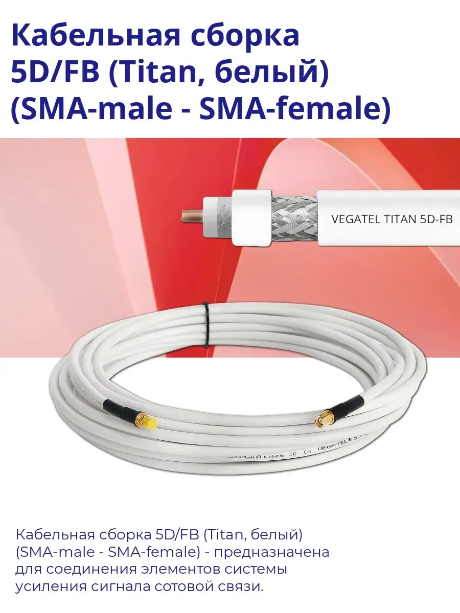 | Артикул | Кабельная сборка 5D/FB (Titan, белый) (SMA-male - SMA-female) 3 м |