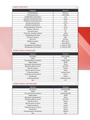 | Разъем | SMA-male/5D, SMA-female/5D |