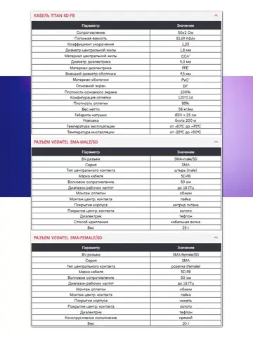 | Разъем | SMA-male/5D, SMA-female/5D |