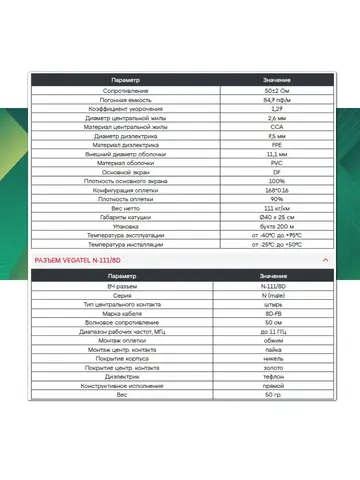 | Модель | Кабельная сборка 8D/FB (черный) (N-male - N-male) 10 м |
