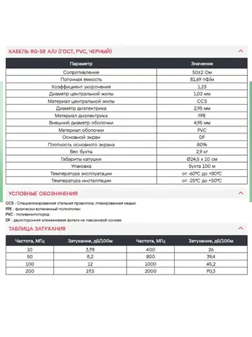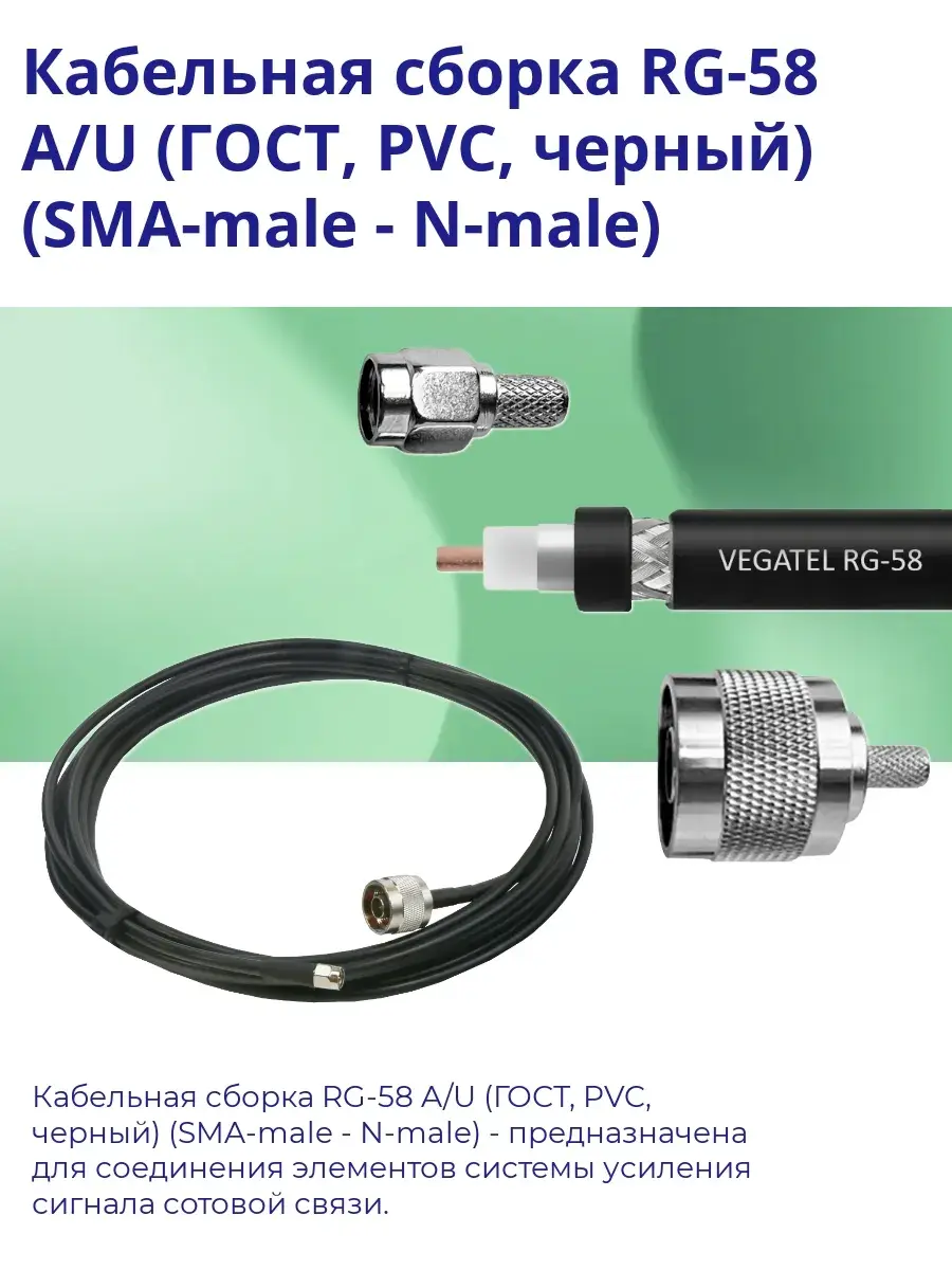 | Модель | Кабельная сборка RG-58 A/U(SMA-male - N-male) 5м |