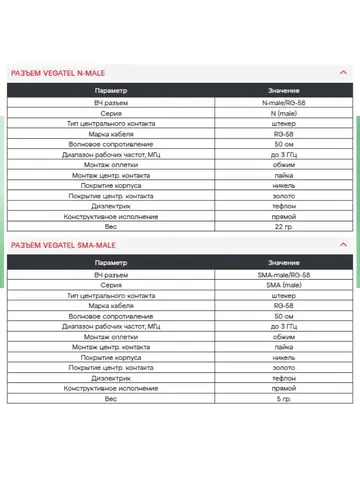 | Разъем | SMA-male/RG-58, N-male/RG-58 |