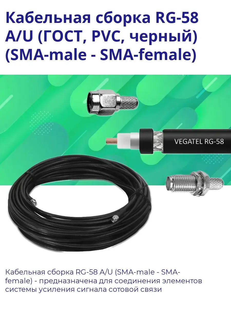 | Артикул | Кабельная сборка RG-58 (SMA-male - SMA-female) |