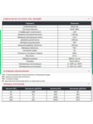 | Модель | Кабельная сборка RG-58 A/U(SMA-male - SMA-female) 5м |