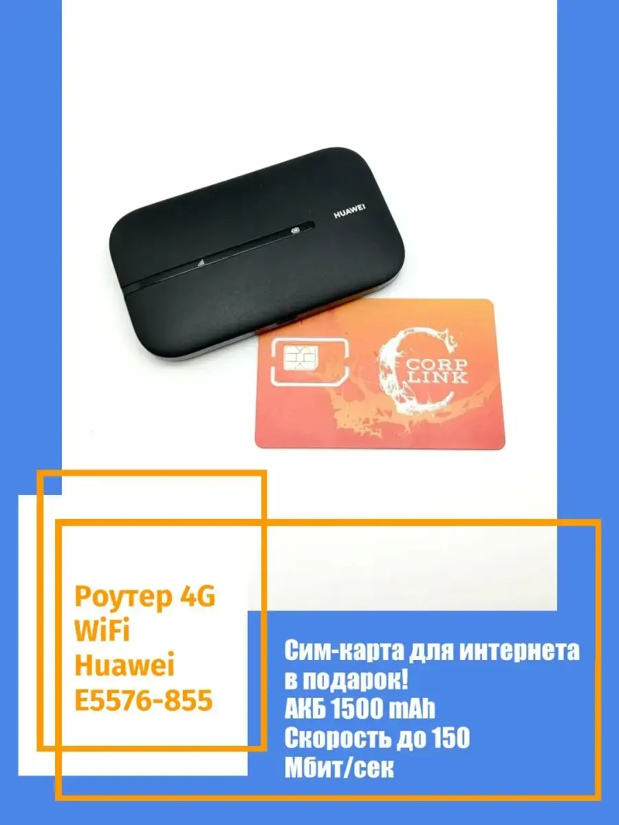 Роутер 4G WiFi Huawei E5576-855 с симкой / мобильный