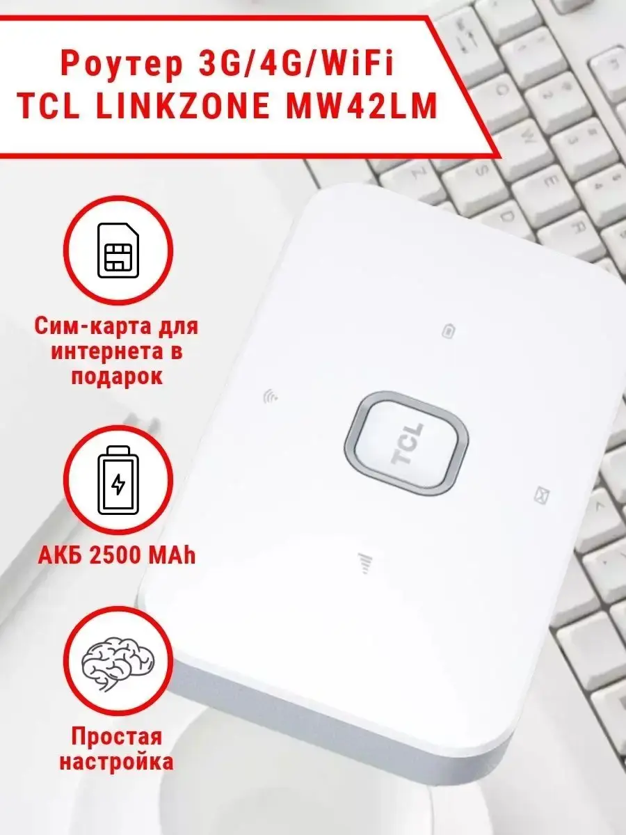 Роутер TCL MW42LM будет полезен деловым людям и рядовым пользователям, желающим организовать подключение нескольких устройств к Интернету вне дома или офиса. Главная особенность модели – способность работать без подключения к электрической сети. Маршрутизатор получает питание от аккумулятора, имеющего емкость 2500 мА·ч. Источником интернет-сигнала является мобильная сеть. Роутер поддерживает стандарты 2G, 3G и 4G. «Раздача» интернет-пакетов осуществляется по Wi-Fi. Маршрутизатор рассчитан на работу в диапазоне 2.4 ГГц, поддерживаемом подавляющим большинством Wi-Fi-совместимых устройств. Максимально допустимое количество соединений по Wi-Fi – 10.