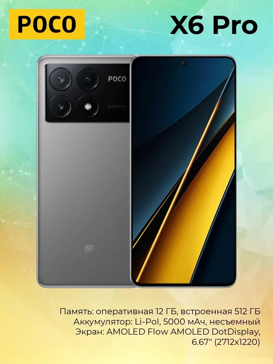 Смартфон Xiaomi Poco X6 Pro 5G оптимально сочетает самобытный дизайн, высокую производительность и полезный функционал, поэтому считается одним из лучших вариантов в своем ценовом сегменте. Тонкие боковые рамки способствуют увеличению поверхности экрана, а тыльная панель из глянцевого пластика обладает устойчивостью к трещинам при механических воздействиях. Мощный процессор MediaTek Dimensity 8300-Ultra и большой объем оперативной памяти позволяют играть в самые требовательные мобильные игры. Сканер отпечатка пальца и система разблокировки по лицу обеспечивают надежную защиту личной и финансовой информации пользователя. ИК-порт помогает организовать удаленное управление разной бытовой техникой – телевизором, кондиционером, ТВ-приставкой, проектором и т.д.