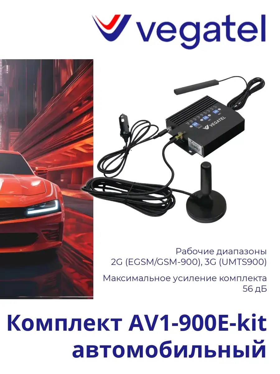 Автомобильный комплект VEGATEL AV1-900E-kit предназначен для усиления сигнала сотовой связи в подвижных объектах (автомобилях, суднах, лифтах и т.д). Функционирует в рабочих диапазонах 2G (EGSM/GSM-900), 3G (UMTS900) и позволяет добиться качественного усиления сигнала, как в самом транспорте, так и в определённом пространстве возле него. Разработан комплект с учетом возможности самостоятельной установки, либо в специализированном сервисе, при возникновении вопросов вы всегда сможете связаться с нашими специалистами. Состоит комплект VEGATEL AV1-900E-kit из репитера (устанавливается внутри транспортного средства), всепогодной антенны (устанавливается на крыше транспортного средства), комнатной антенны (устанавливается внутри транспортного средства), адаптера 12В и крепежей.