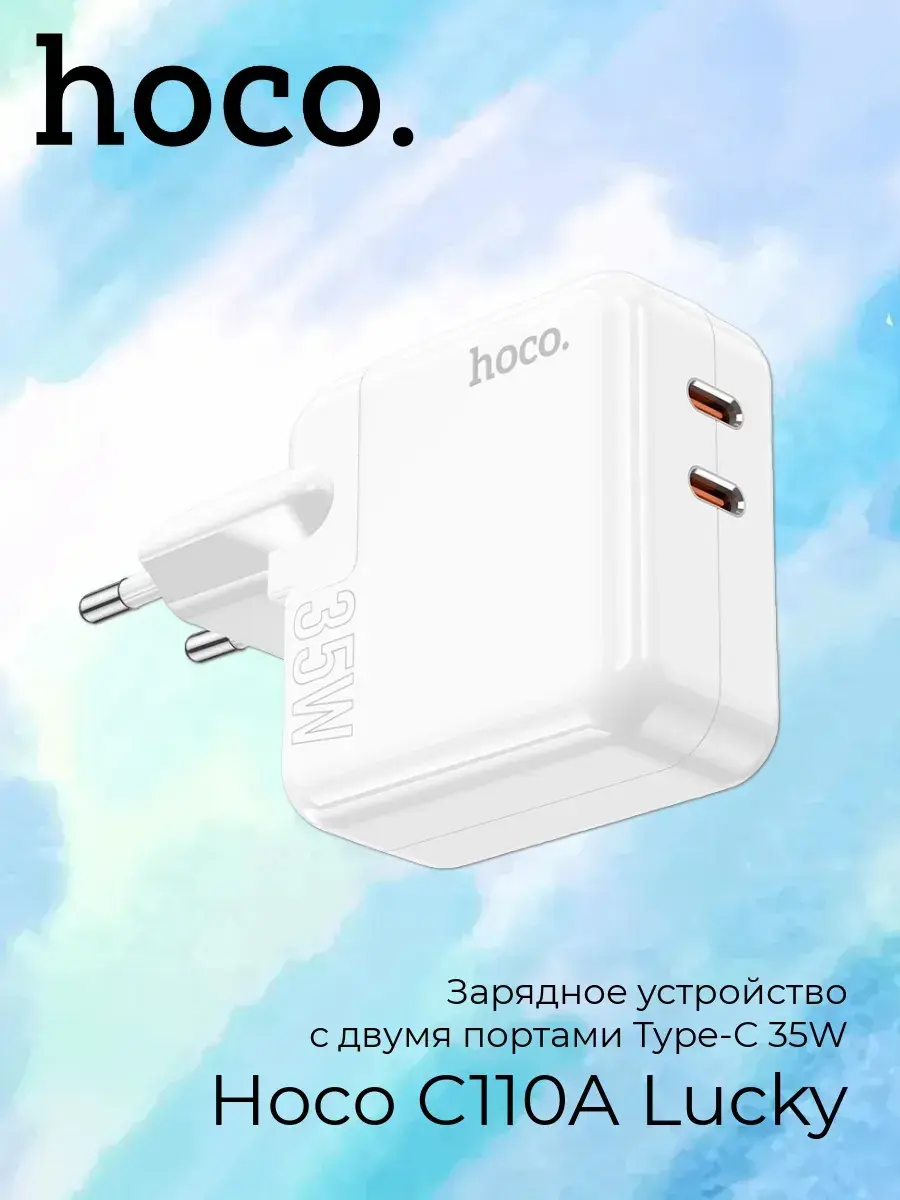 C110A Lucky, зарядное устройство с двумя портами Type-C 35W, EU штекер