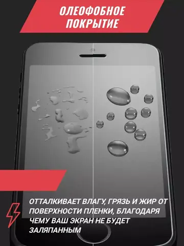 Защитная пленка для телефона достаточно плотная и противоударная, толщина около 0.3мм. Бронепленка спасёт экран при падении. Пленка состоит из гибкого полимерного материала, который обладает высокой механической прочностью и водонепроницаемостью. Утолщенная защитная пленка обладает целым рядом преимуществ: не уменьшает чувствительность сенсора, при её наклейке на экран не возникают пузыри, за счет небольшой толщины она совершенно незаметна при пользовании устройством, срок службы защитной пленки на телефон превосходит срок службы стекла в несколько раз. Коэффициент твердости 9H обеспечивает защиту пленки от царапин.
